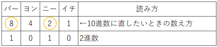2進数の4桁=1000 は 10進数の8 なんです!!