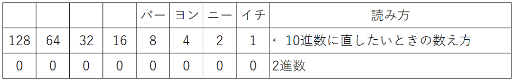 じゃあ8ビットを10進数で表現するとどうなるか?