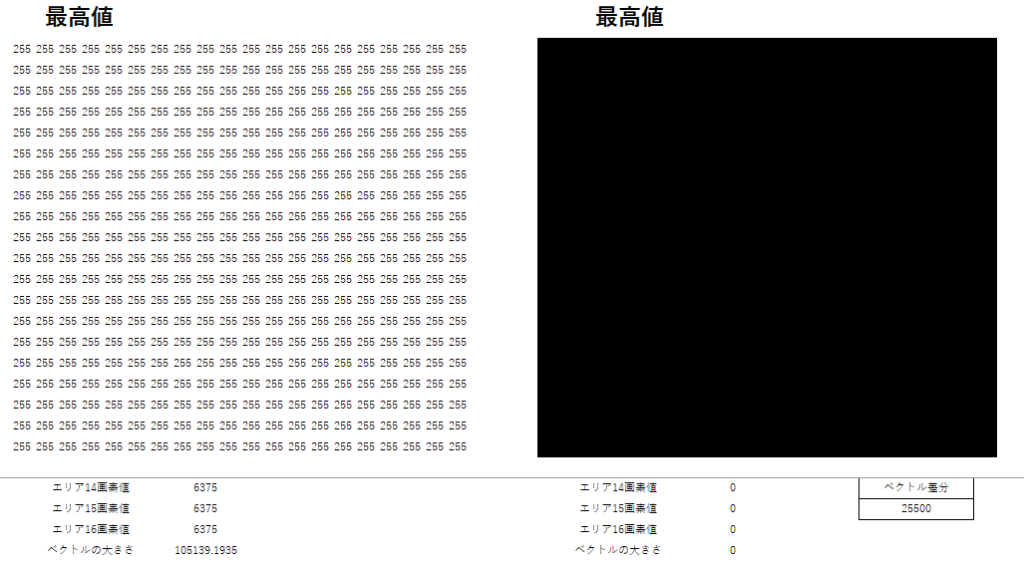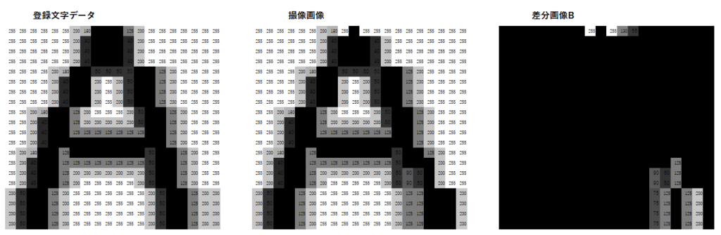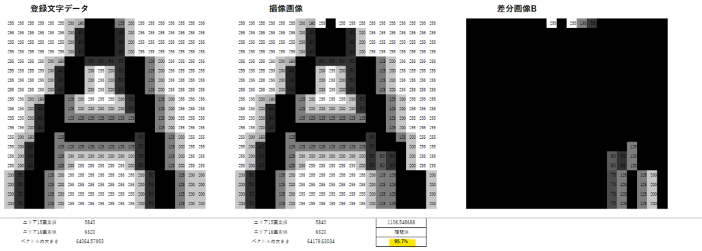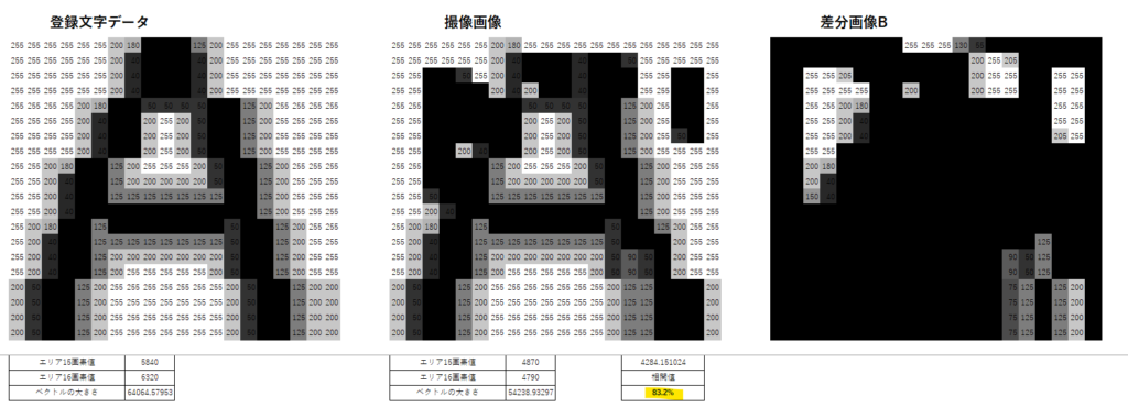 - 正解パターンと入力パターンのベクトル差分から「相関値っぽいもの」を計算