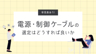 電気・制御 【早見表あり!】電源・制御ケーブルの選定はどうすれば良いか この記事でわかること 負荷容量(W/VA/A)から電源・制御ケーブルのスケアサイズ(太さ)を計算して決める方法 使用環境に応じた代表的なケーブル種類(CV/CVT/CVV/VCT/VVF/IVなど)の特徴と使い分け 「結局どれを選べばいいの... 2020.05.06 2025.12.08 電気・制御