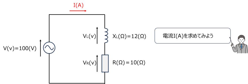 試しに例として抵抗Rとコイル抵抗XLを置いた直列回路がこちらになります。