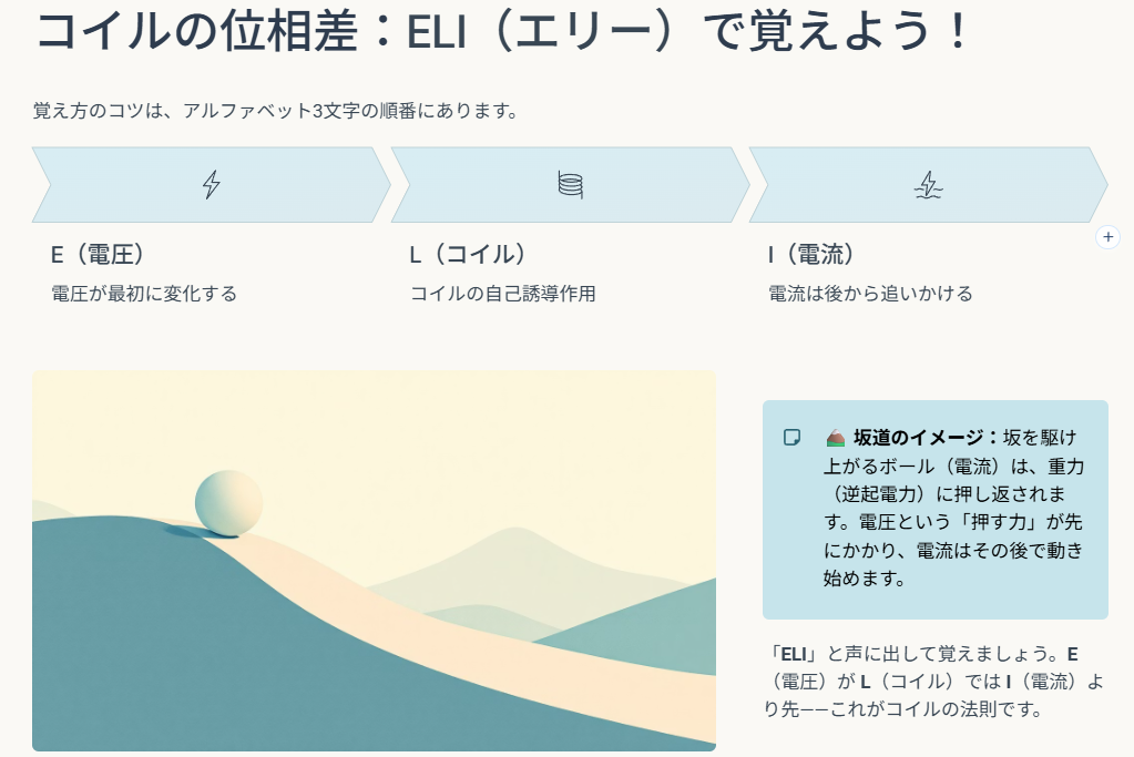 交流回路では、E・L・I の関係を覚える語呂として、ELIという考え方があります。