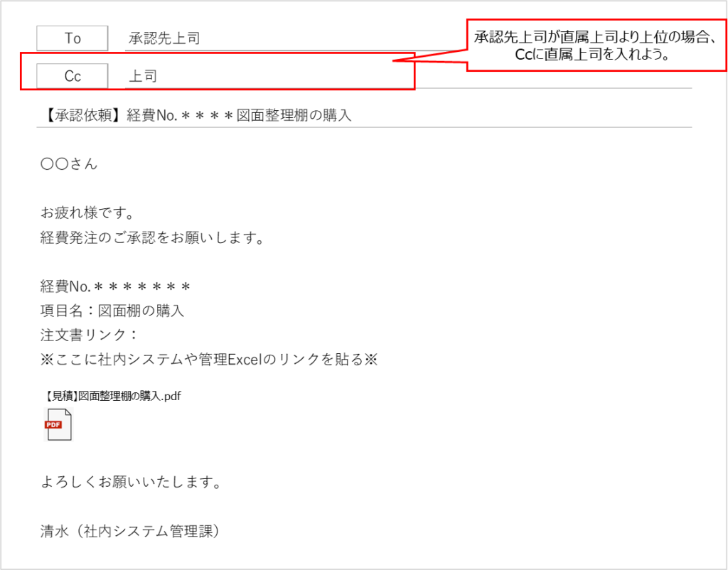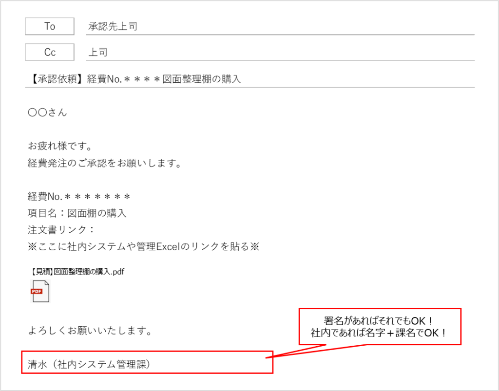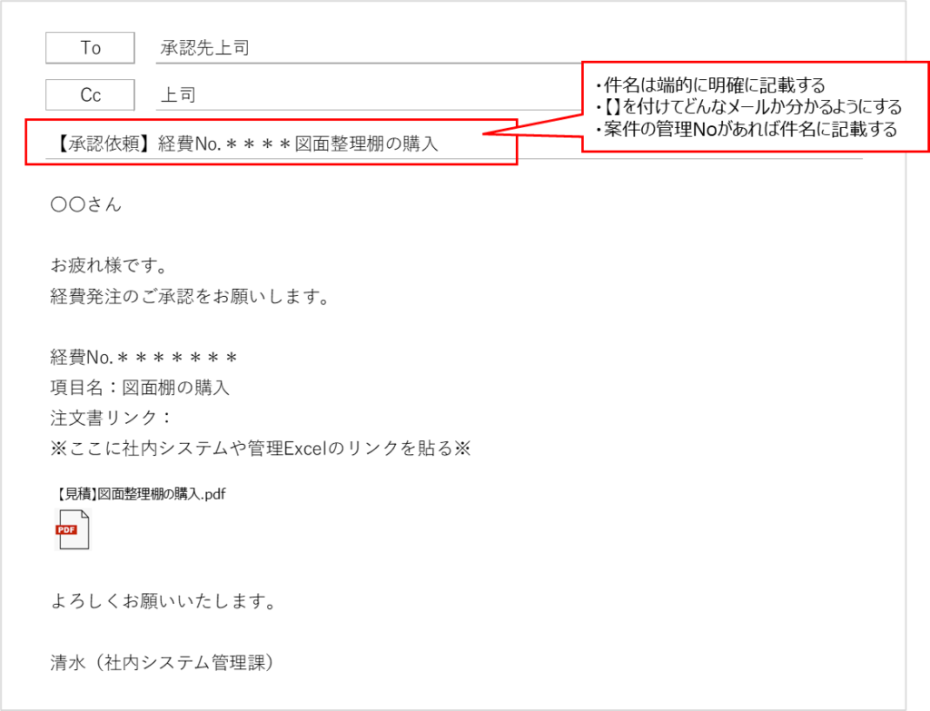 承認相手が承認しやすい形に情報を整えて送るメールのことです。