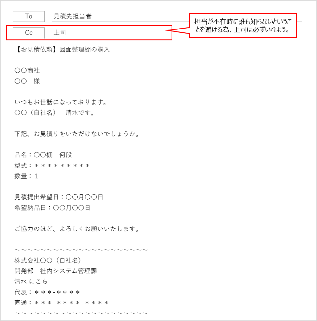 Cc.については社内向けとさほど変わりませんが、社外とのやりとりになるので、上司を入れるようにしましょう。