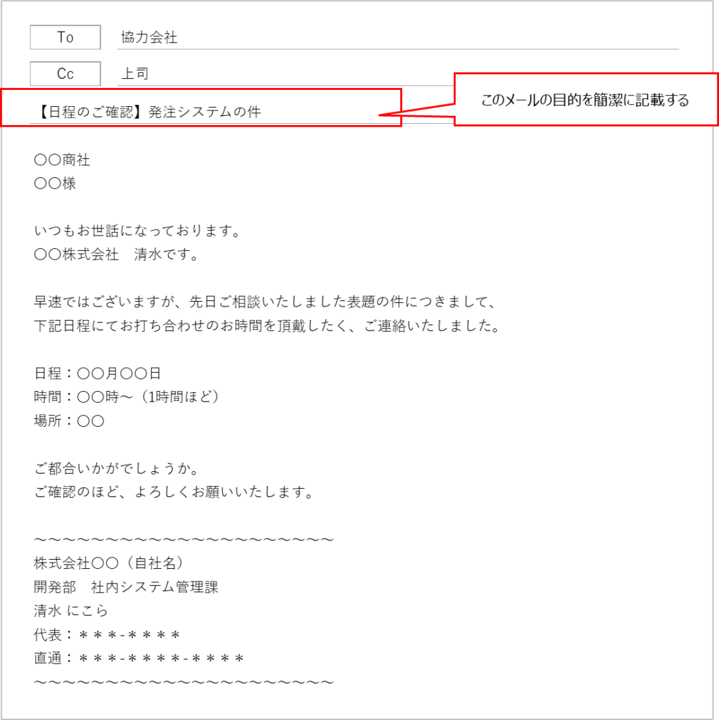 • 本文では必要な情報を簡潔に伝えること