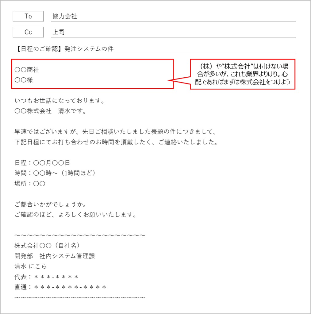 ここは社外とメールをやり取りする上で重要なポイントになります。