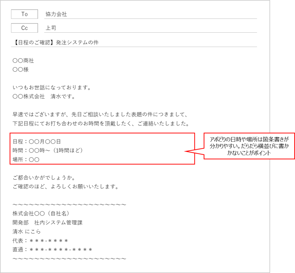 本文の日程や質問は箇条書きがベスト