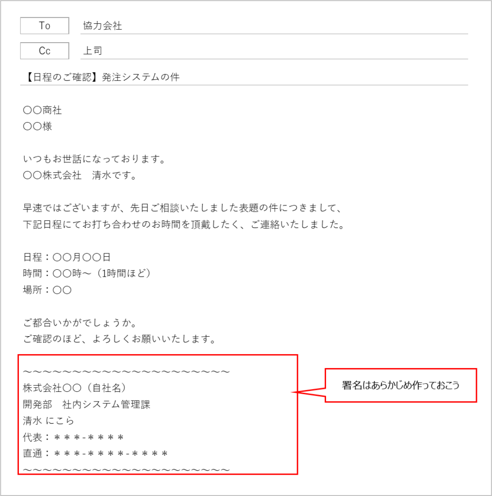 • 最後に署名を付けて、相手が動きやすい状態にしておくこと