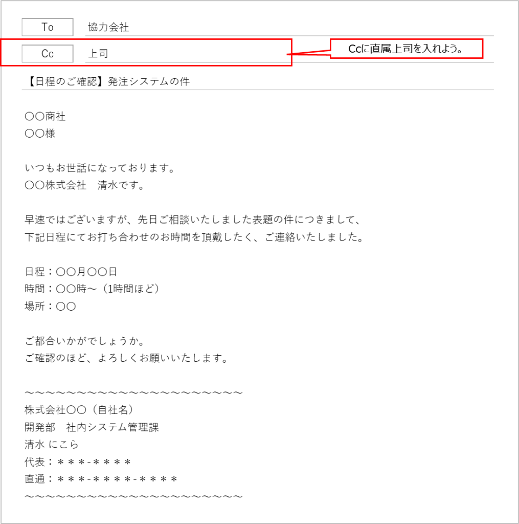Cc.には直属の管理職を入れてください。